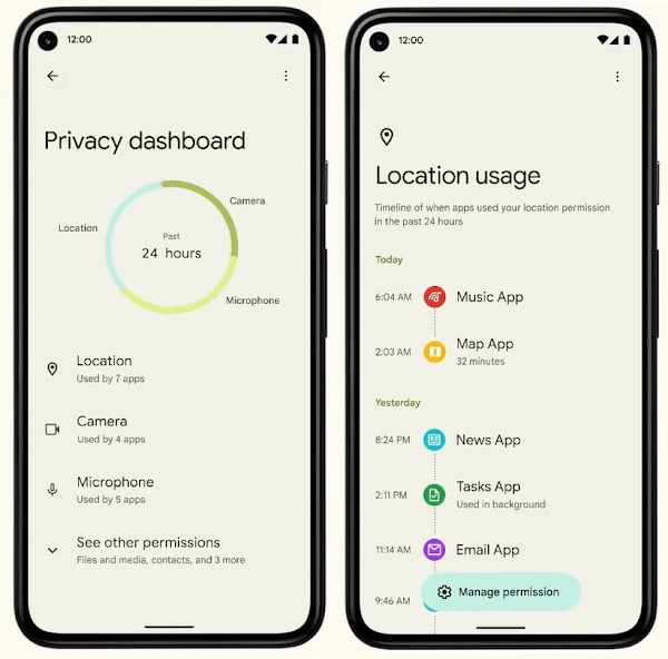 Android 12 では、前述の新しいプライバシー機能に加えて、プライバシー保護システム自体を OS に直接組み込んだ。